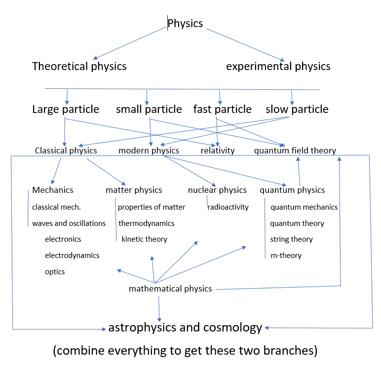 These are different ways to classify physics on different grounds but looking all these is quite confusing so let’s try to create a uniform distribution of physics which summaries all the maps shown above.